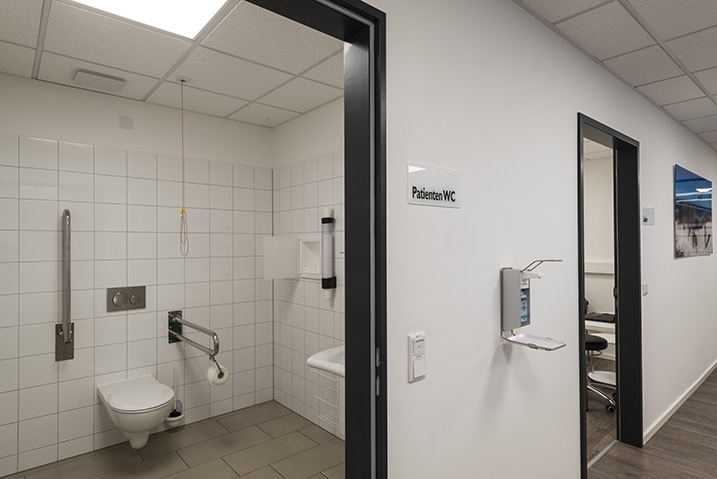 barrierefreies Patienten-WC mit Durchreiche zum Labor