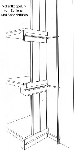 Die schmalen Seitenflächen sind mit Spezial-Polyurethan-Punktlagern versehen, die der Kraftübertragung dienen. Die verbleibenden, im Ortbeton befindlichen Flächen sind gegenüber dem Ortbeton durch Mineralfaserdämmmatten getrennt. Die dem Schacht zugewandte Seite trägt Halfenschienen, an denen die Schachttüren und die Tragelemente der Aufzugsschienen befestigt werden.